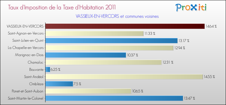 A Vassieux-en-Vercors, le taux de la taxe d'habitation est donc plus élevé de 2.23 % que pour des communes similaires.