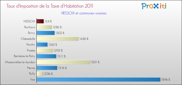 Vous trouverez ci-dessous des graphiques qui vous permettent de situer le taux de la taxe d'habitation de Viessoix par rapport aux communes voisines.