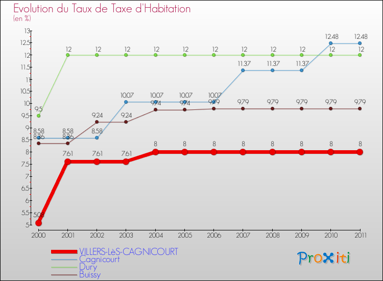 En 2011, le taux de la taxe d'habitation vôté par le conseil municipal de Villers-lès-Cagnicourt était de : 8 %.
