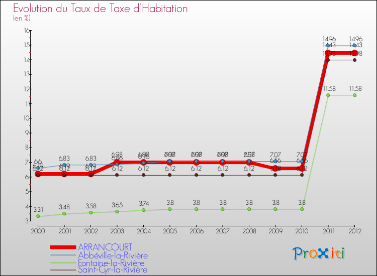 En 2012, le taux de la taxe d'habitation vôté par le conseil municipal de Arrancourt était de : 14.43 %.