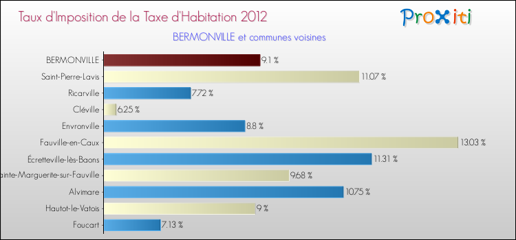 En 2012, le taux de la taxe d'habitation vôté par le conseil municipal de Bermonville était de : 9.1 %.