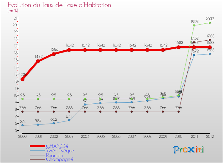 En 2012, le taux de la taxe d'habitation vôté par le conseil municipal de Changé était de : 16.83 %.