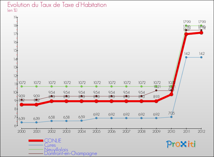 A Conlie, le taux de taxe d'habitation a ainsi augmenté de 101.17 % entre 2000 et 2012.