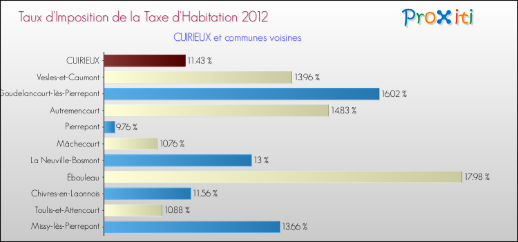 Vous trouverez ci-dessous des graphiques qui vous permettent de situer le taux de la taxe d'habitation de Cuirieux par rapport aux communes voisines.