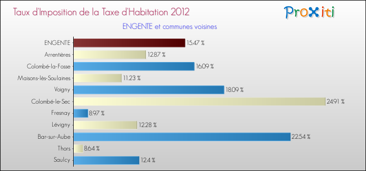 Vous trouverez ci-dessous des graphiques qui vous permettent de situer le taux de la taxe d'habitation de Engente par rapport aux communes voisines.