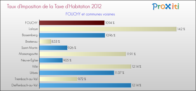 En 2012, le taux de la taxe d'habitation vôté par le conseil municipal de Fouchy était de : 10.94 %.