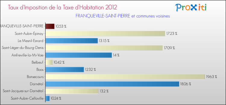 En 2012, le taux de la taxe d'habitation vôté par le conseil municipal de Franqueville-Saint-Pierre était de : 10.53 %.