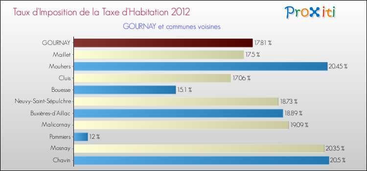 En 2012, le taux de la taxe d'habitation vôté par le conseil municipal de Gournay était de : 17.81 %.