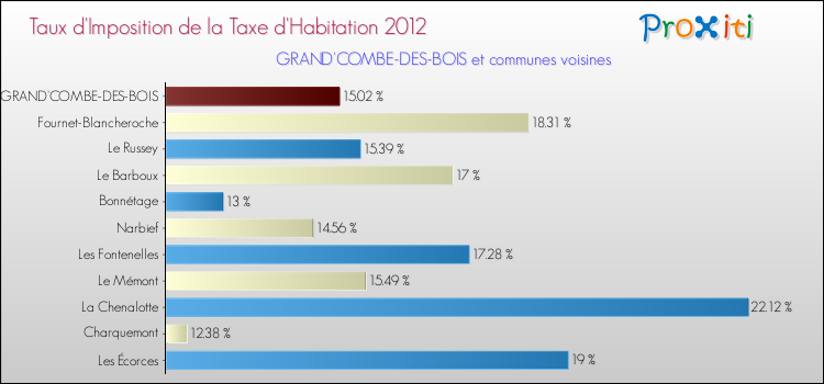 En 2012, le taux de la taxe d'habitation vôté par le conseil municipal de Grand'Combe-des-Bois était de : 15.02 %.