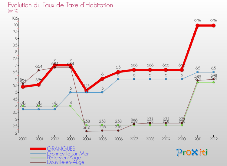 A Grangues, le taux de taxe d'habitation a ainsi augmenté de 83.76 % entre 2000 et 2012.