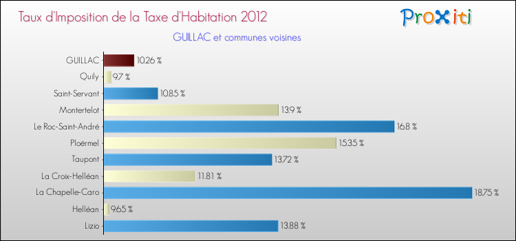 En 2012, le taux de la taxe d'habitation vôté par le conseil municipal de Guillac était de : 10.26 %.