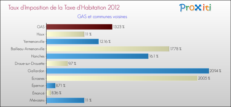 Vous trouverez ci-dessous des graphiques qui vous permettent de situer le taux de la taxe d'habitation de Gas par rapport aux communes voisines.