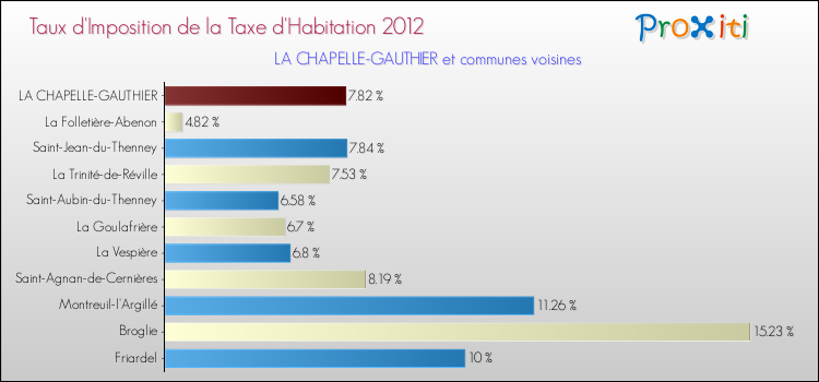 En 2012, le taux de la taxe d'habitation vôté par le conseil municipal de La Chapelle-Gauthier était de : 7.82 %.