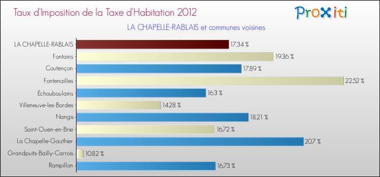 En 2012, le taux de la taxe d'habitation vôté par le conseil municipal de La Chapelle-Rablais était de : 17.34 %.