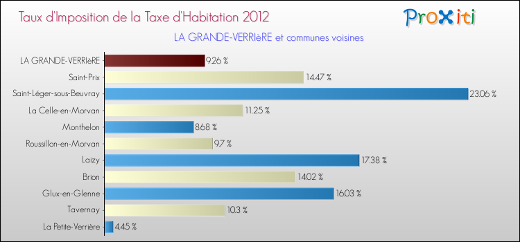 En 2012, le taux de la taxe d'habitation vôté par le conseil municipal de La Grande-Verrière était de : 9.26 %.