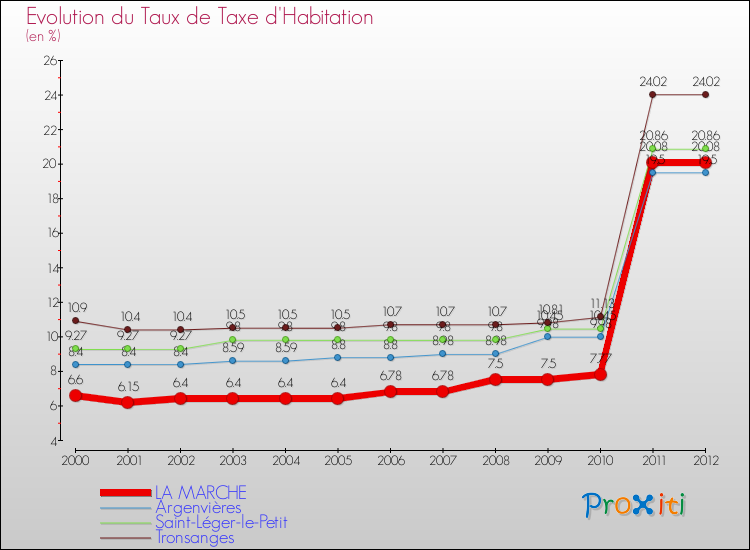 A La Marche, le taux de taxe d'habitation a ainsi augmenté de 204.24 % entre 2000 et 2012.