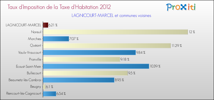 En 2012, le taux de la taxe d'habitation vôté par le conseil municipal de Lagnicourt-Marcel était de : 6.21 %.