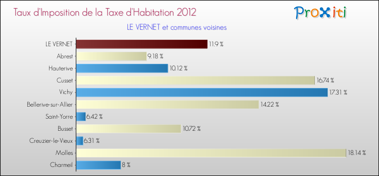 En 2012, le taux de la taxe d'habitation vôté par le conseil municipal de Le Vernet était de : 11.9 %.