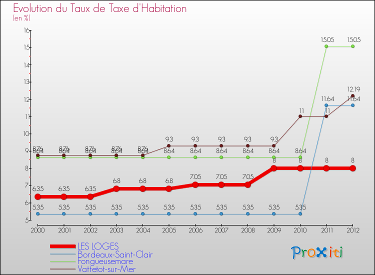En 2012, le taux de la taxe d'habitation vôté par le conseil municipal de Les Loges était de : 8 %.