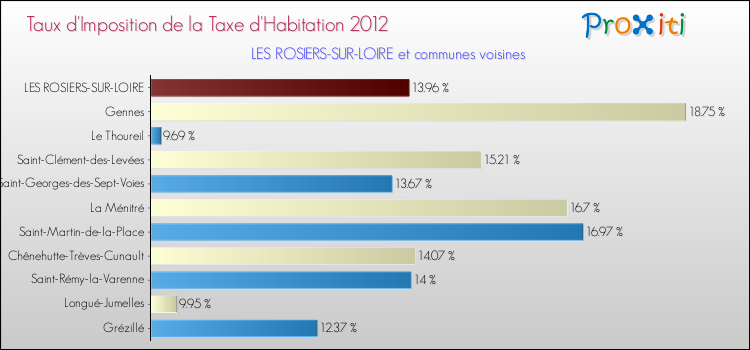En 2012, le taux de la taxe d'habitation vôté par le conseil municipal de Les Rosiers-sur-Loire était de : 13.96 %.