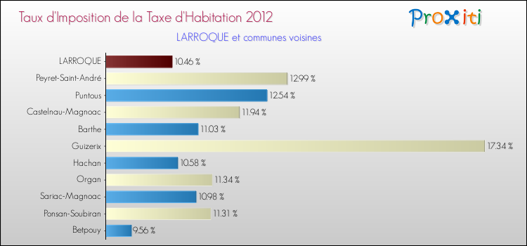 Vous trouverez ci-dessous des graphiques qui vous permettent de situer le taux de la taxe d'habitation de Larroque par rapport aux communes voisines.