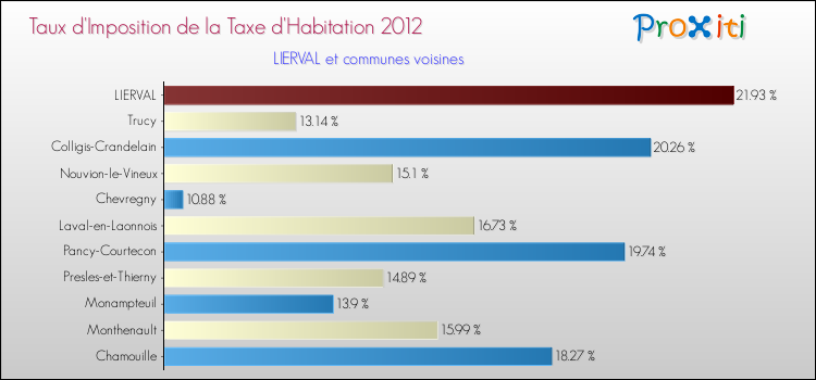 En 2012, le taux de la taxe d'habitation vôté par le conseil municipal de Lierval était de : 21.93 %.