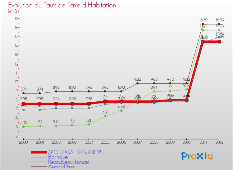 A Montmaur-en-Diois, le taux de taxe d'habitation a ainsi augmenté de 90.77 % entre 2000 et 2012.