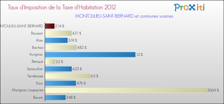En 2012, le taux de la taxe d'habitation vôté par le conseil municipal de Montoulieu-Saint-Bernard était de : 2.14 %.