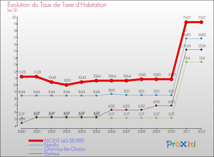 A Mont-lès-Seurre, le taux de taxe d'habitation a ainsi augmenté de 71.59 % entre 2000 et 2012.