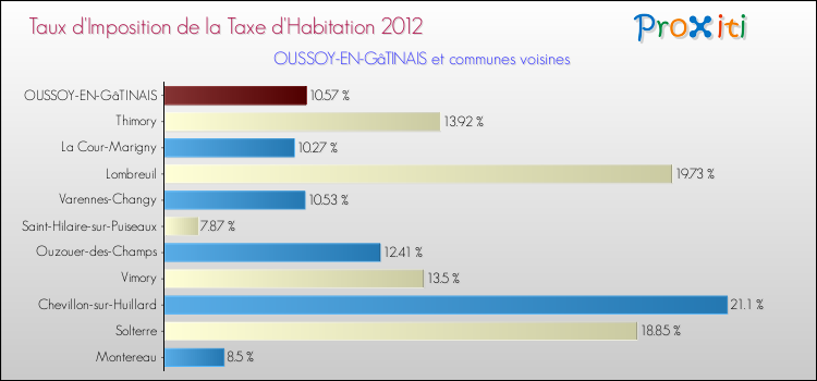 En 2012, le taux de la taxe d'habitation vôté par le conseil municipal de Oussoy-en-Gâtinais était de : 10.57 %.