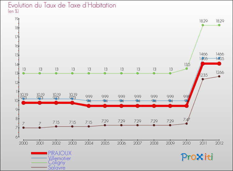 A Pirajoux, le taux de taxe d'habitation a ainsi augmenté de 44.4 % entre 2000 et 2012.
