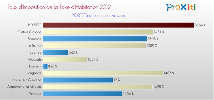 En 2012, le taux de la taxe d'habitation vôté par le conseil municipal de Portets était de : 16.66 %.