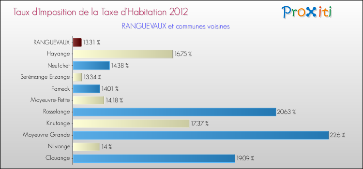 Vous trouverez ci-dessous des graphiques qui vous permettent de situer le taux de la taxe d'habitation de Ranguevaux par rapport aux communes voisines.