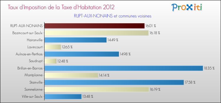 En 2012, le taux de la taxe d'habitation vôté par le conseil municipal de Rupt-aux-Nonains était de : 16.01 %.