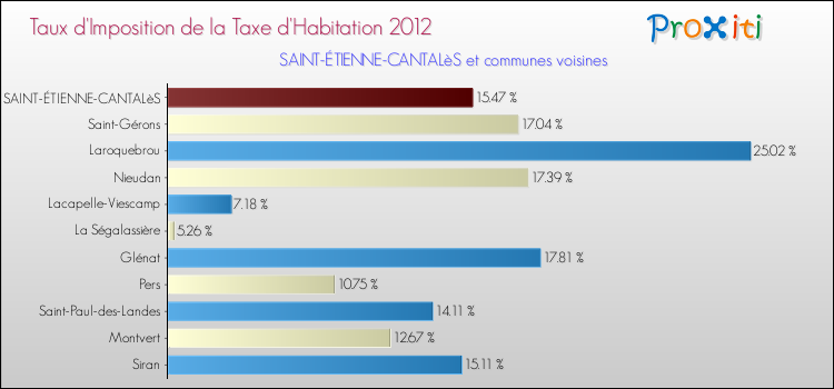 Vous trouverez ci-dessous des graphiques qui vous permettent de situer le taux de la taxe d'habitation de Saint-Étienne-Cantalès par rapport aux communes voisines.