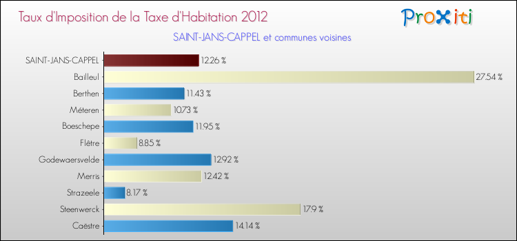 En 2012, le taux de la taxe d'habitation vôté par le conseil municipal de Saint-Jans-Cappel était de : 12.26 %.
