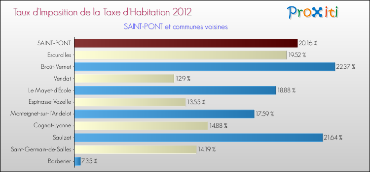 Vous trouverez ci-dessous des graphiques qui vous permettent de situer le taux de la taxe d'habitation de Saint-Pont par rapport aux communes voisines.
