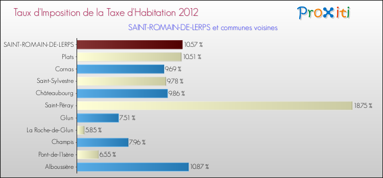 En 2012, le taux de la taxe d'habitation vôté par le conseil municipal de Saint-Romain-de-Lerps était de : 10.57 %.