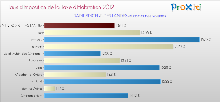 Vous trouverez ci-dessous des graphiques qui vous permettent de situer le taux de la taxe d'habitation de Saint-Vincent-des-Landes par rapport aux communes voisines.