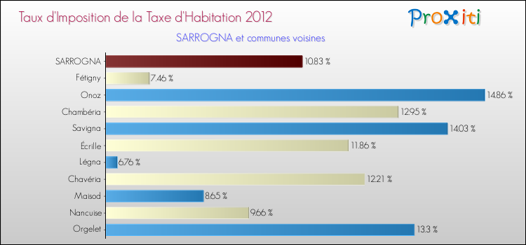 En 2012, le taux de la taxe d'habitation vôté par le conseil municipal de Sarrogna était de : 10.83 %.