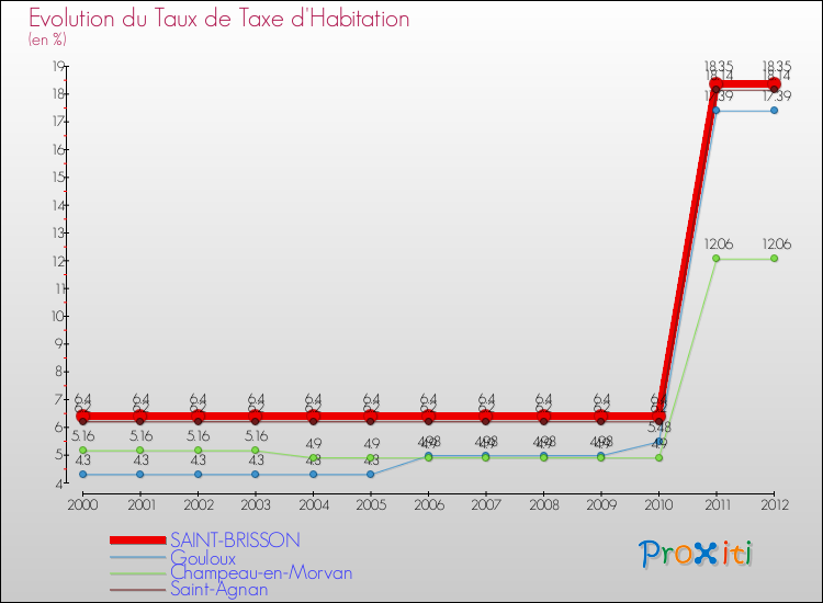 A Saint-Brisson, le taux de taxe d'habitation a ainsi augmenté de 186.72 % entre 2000 et 2012.