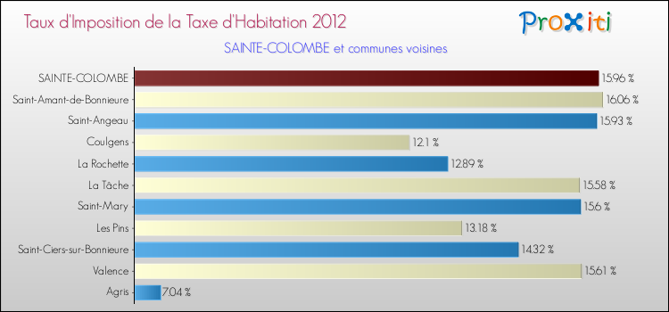 Vous trouverez ci-dessous des graphiques qui vous permettent de situer le taux de la taxe d'habitation de Sainte-Colombe par rapport aux communes voisines.