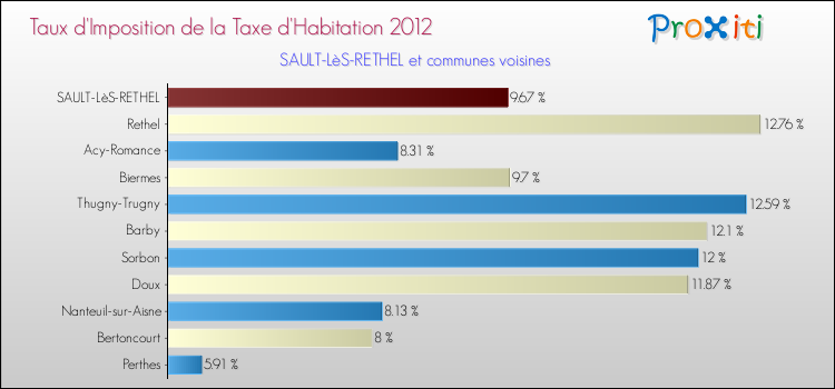 En 2012, le taux de la taxe d'habitation vôté par le conseil municipal de Sault-lès-Rethel était de : 9.67 %.