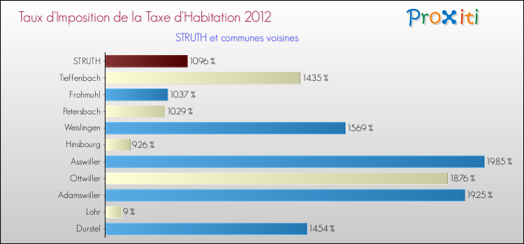En 2012, le taux de la taxe d'habitation vôté par le conseil municipal de Struth était de : 10.96 %.