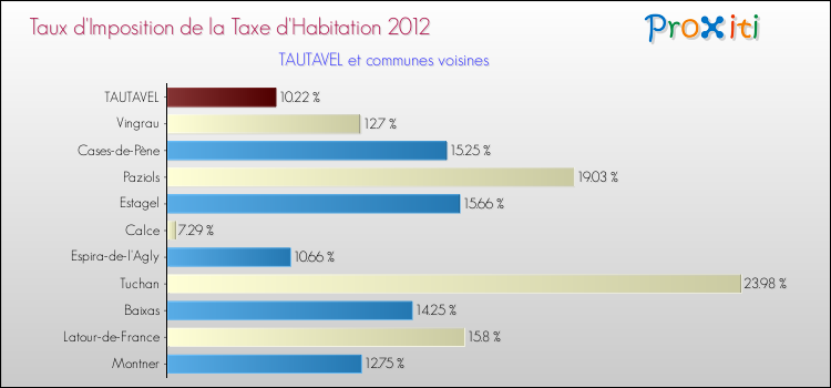 En 2012, le taux de la taxe d'habitation vôté par le conseil municipal de Tautavel était de : 10.22 %.