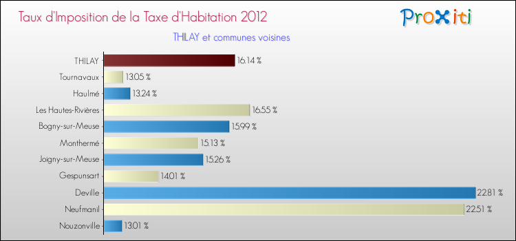Vous trouverez ci-dessous des graphiques qui vous permettent de situer le taux de la taxe d'habitation de Thilay par rapport aux communes voisines.