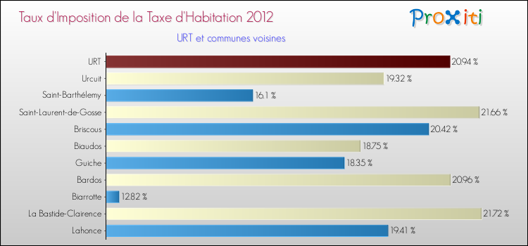 En 2012, le taux de la taxe d'habitation vôté par le conseil municipal de Urt était de : 20.94 %.