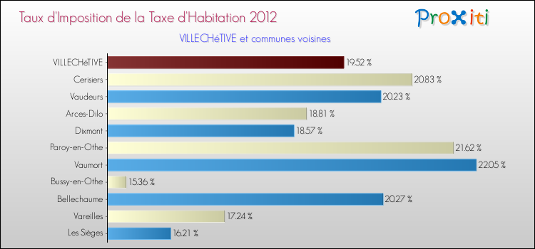 Vous trouverez ci-dessous des graphiques qui vous permettent de situer le taux de la taxe d'habitation de Villechétive par rapport aux communes voisines.