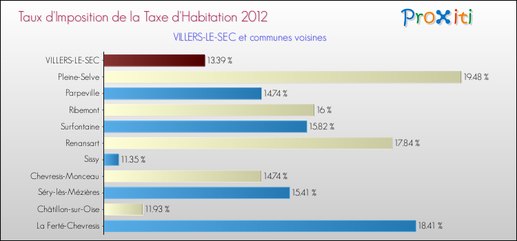 En 2012, le taux de la taxe d'habitation vôté par le conseil municipal de Villers-le-Sec était de : 13.39 %.