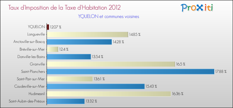 En 2012, le taux de la taxe d'habitation vôté par le conseil municipal de Yquelon était de : 12.07 %.